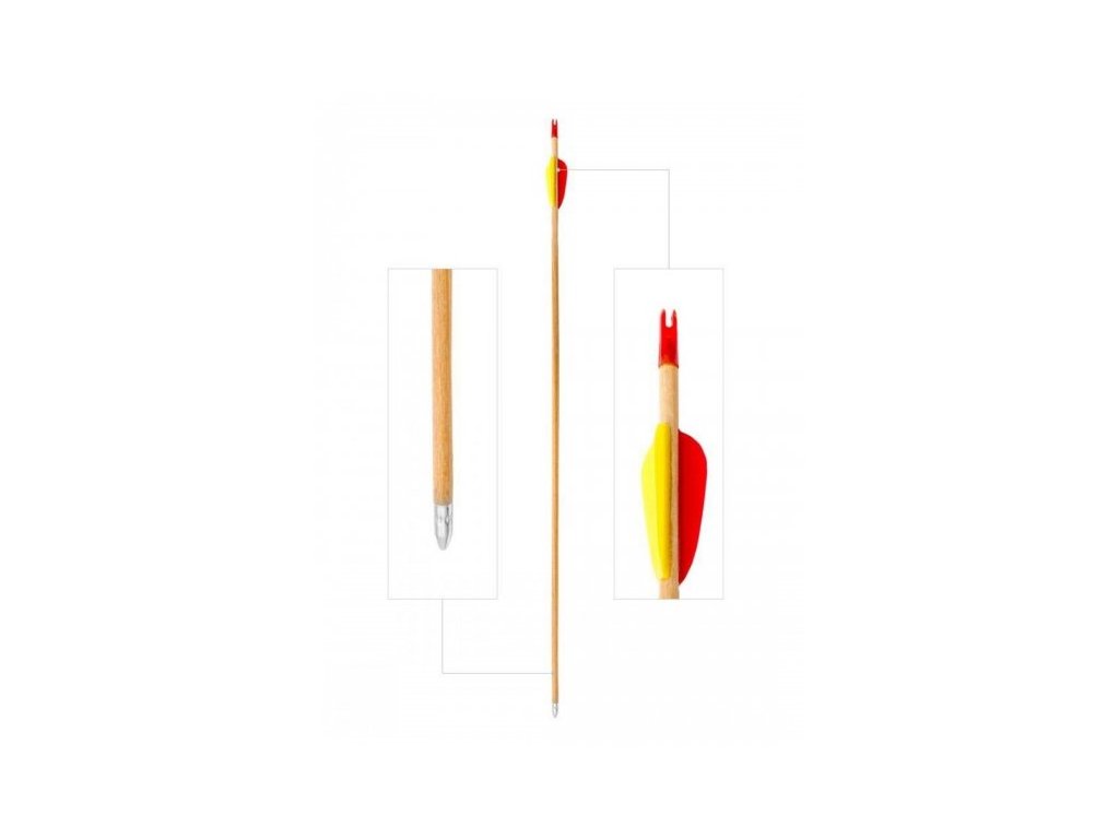 Tento dřevěný šíp je určen pro rekreační lukostřelbu ze slabých luků.